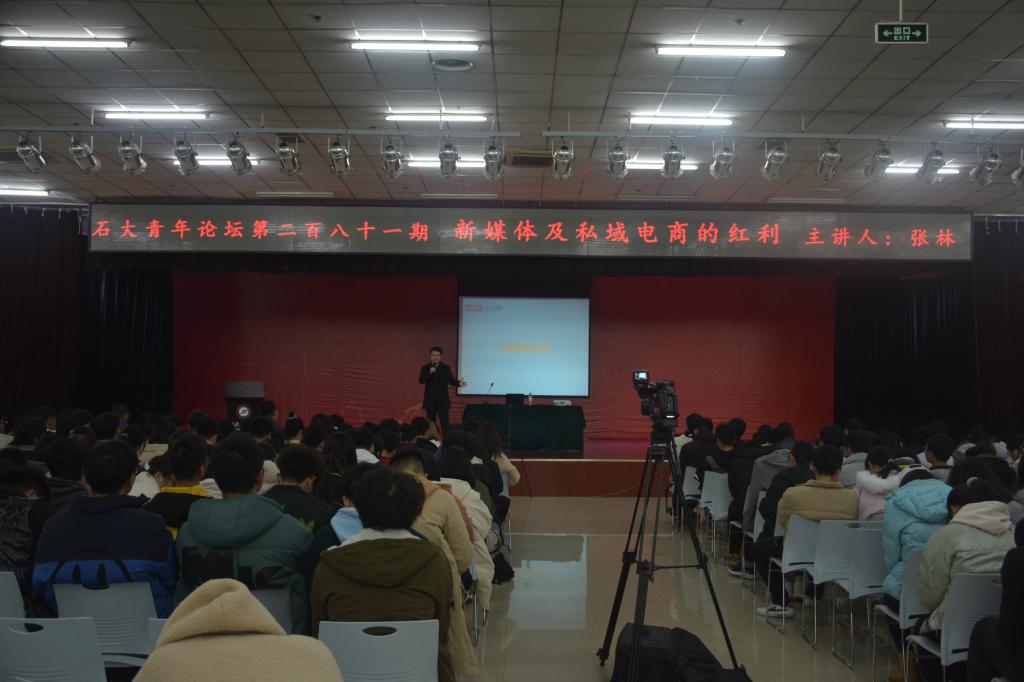 12月1日晚,由校團(tuán)委主辦、計(jì)算機(jī)學(xué)院承辦的第281期石大青年論壇在鄠邑校區(qū)騰輝大學(xué)生活動(dòng)中心舉辦,本期論壇邀請(qǐng)到計(jì)算機(jī)學(xué)院優(yōu)秀校友、西安美人魚(yú)互聯(lián)網(wǎng)產(chǎn)業(yè)有限公司總經(jīng)理張林作題為“新媒體及私域電商的紅利”的主題報(bào)告,計(jì)算機(jī)學(xué)院2020級(jí)輔導(dǎo)員劉亭普及學(xué)院400余名學(xué)生參加。