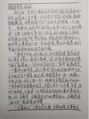 寫信過程中,不少同學情緒激動,信中文字飽含情感,那些從未向父母說過的話,都落筆在信中,不曾向父母表達過的愛意,都滲入在文字里。一封家書,跨過千萬公里的距離,連接起同學們與父母的心。即使在溝通便利的今天,書信的溫度依然是任何通訊設(shè)備無法比擬的。一筆一劃中,飽含情感,一字一句里,都是同學們對家人的愛。