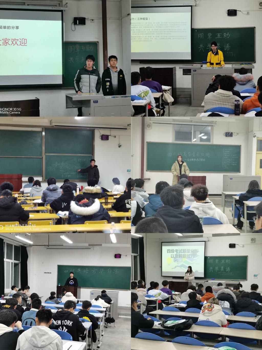 學(xué)院學(xué)工辦聯(lián)合教師、輔導(dǎo)員及學(xué)生成立英語(yǔ)能力提升專項(xiàng)小組,堅(jiān)持學(xué)院統(tǒng)一目標(biāo),各年級(jí)因需制宜原則,采取開展專業(yè)老師講座輔導(dǎo)、成立學(xué)生導(dǎo)師團(tuán)互助、組織定期模擬考試、分層專項(xiàng)自學(xué)及組織英語(yǔ)類活動(dòng)等方式,激發(fā)學(xué)生英語(yǔ)學(xué)習(xí)興趣,提高學(xué)生英語(yǔ)聽說讀寫能力,幫助學(xué)生高效通過英語(yǔ)四六級(jí)。通過英語(yǔ)學(xué)習(xí)以點(diǎn)帶面,繼續(xù)傳承地科院優(yōu)良學(xué)風(fēng)。