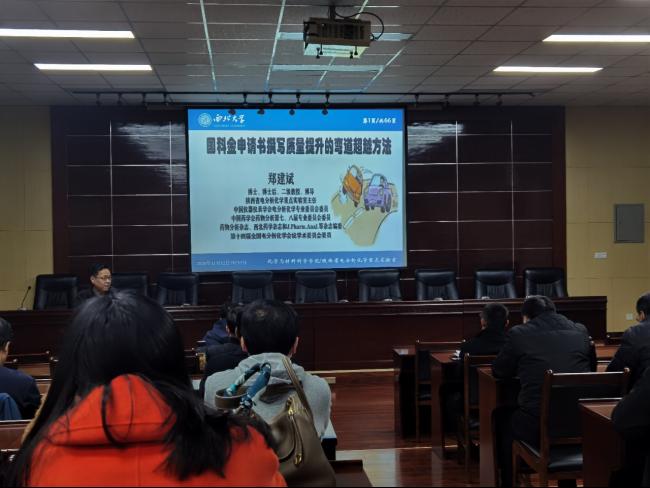 鄭建斌教授在長達兩個半小時的報告中,結合自己成功申請國家自然科學基金方面的心得與感悟,詳細介紹了國科金申請書撰寫質量提升的拐彎超越方法,提出了通過對項目指令中“題目、內容、目標、創(chuàng)新”等關鍵詞的理解及常規(guī)邏輯等其他常識的運用,學習國家自然科學基金和社會科學基金申請書的撰寫的新方法。鄭教授的報告生動有趣,語言幽默,講解深入淺出,使與會老師們受益匪淺。鄭教授希望大家在后續(xù)的申報書寫作方面常和他聯(lián)系,相互學習,共同提高。