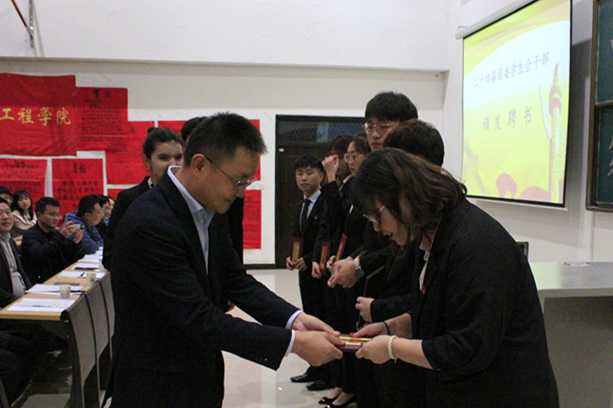大會上聽取并審議了學(xué)院二十三屆團(tuán)委學(xué)生會年度工作報告。同時,李剛老師對上年度工作進(jìn)行總結(jié),并宣讀了第二十四屆院團(tuán)委學(xué)生會主要學(xué)生干部的任免決定。接著,與會領(lǐng)導(dǎo)老師向新一屆學(xué)生干部頒發(fā)了聘書。