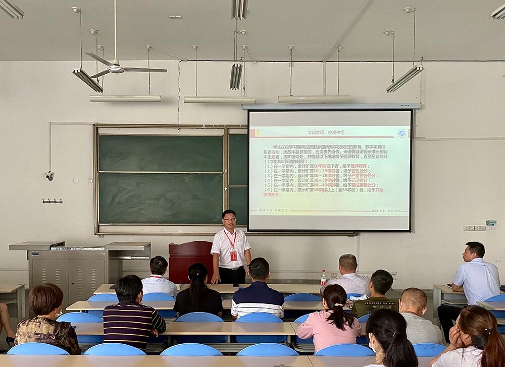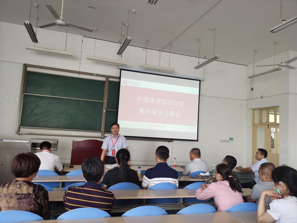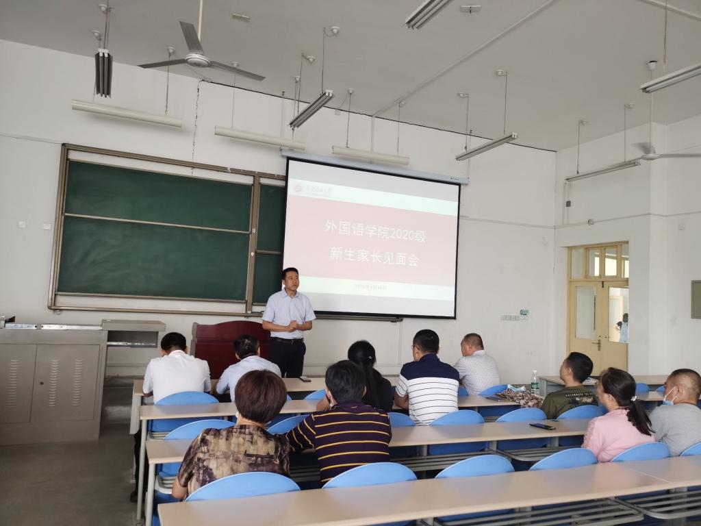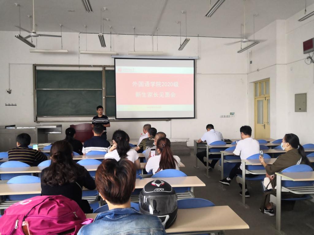2020年9月16日上午,外國語學院2020級新生家長會在鄠邑校區(qū)B區(qū)教學樓119室舉行。學院黨委書記蔡強、黨委副書記王業(yè)青、副院長陳武、學生工作辦公室主任張帆、新生輔導員陳浩及新生家長參加了本次家長會。為了滿足學生家長需要,本次家長會采取線上線下結合方式,在騰訊會議同步召開。會議由學院學生工作辦主任張帆主持。