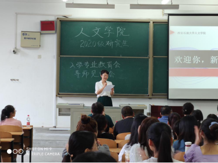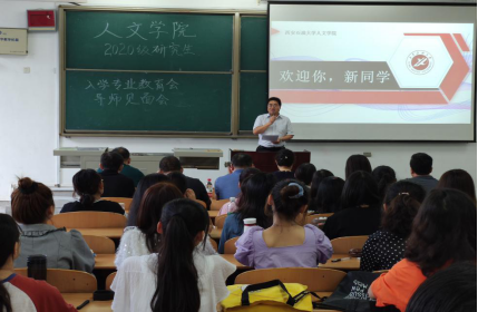 2020年9月11日上午9點,2020級研究生專業(yè)教育大會暨導師見面會在人文學院鄠邑校區(qū)B210教室正式舉行。本次會議由人文學院副黨委書記盛丹主持,人文學院黨委書記余小勇、院長李濤、副院長方松林、研究生秘書張盼、輔導員崔馨文以及2020級人文學院研究生指導老師出席此次會議,107名2020級研究生新生參會。