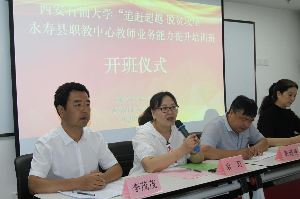 -  -  91213日,永壽縣職教中心教師業(yè)務(wù)能力提升培訓(xùn)班在西安石油大學(xué)培訓(xùn)中心開班,永壽縣職教中心35名老師參加了這次培訓(xùn)。這是校工會(huì)依據(jù)省高教工委 “雙百工程”,2020年助力永壽脫貧攻堅(jiān),實(shí)施教育幫扶工程的一項(xiàng)重要舉措。校工會(huì)主席袁玎、副主席朱瑋、永壽縣人民政府教育督導(dǎo)室副主任黃健身出席開班儀式,開班儀式由朱瑋主持。