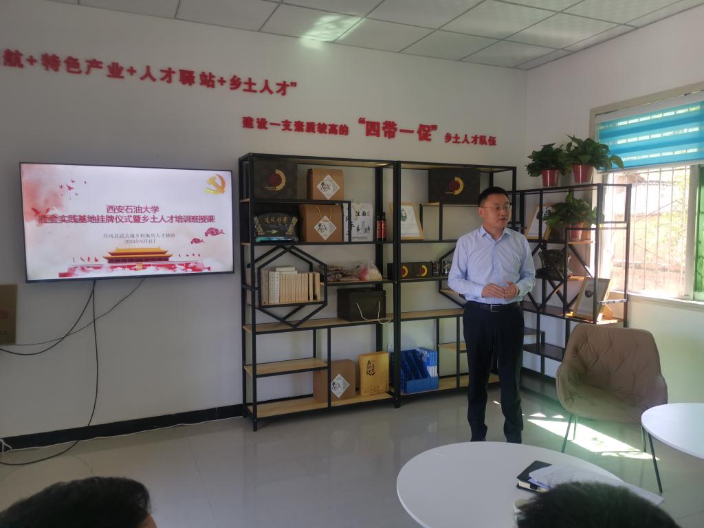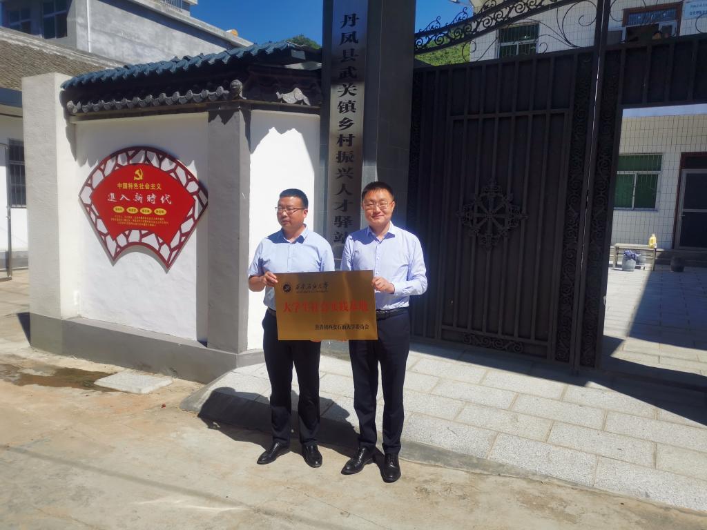 在武關(guān)鎮(zhèn)人才驛站,丹鳳縣人民政府副縣長張爭京與我校團(tuán)委書記何國強(qiáng)共同為“西安石油大學(xué)大學(xué)生社會實(shí)踐基地”掛牌。