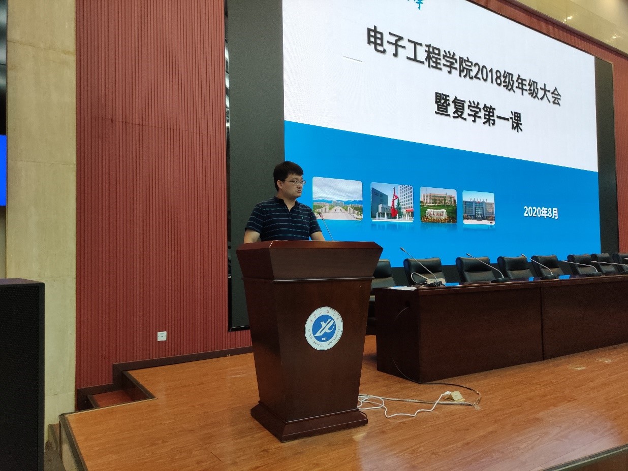 根據(jù)《西安石油大學(xué)秋季學(xué)期開(kāi)學(xué)和疫情防控工作方案》要求,結(jié)合學(xué)院具體工作安排。8月28日,電子工程學(xué)院2018級(jí)在鄠邑校區(qū)弘石學(xué)術(shù)報(bào)告廳分批次開(kāi)展了“復(fù)學(xué)第一課”。會(huì)議由學(xué)院2018級(jí)輔導(dǎo)員錢宇航主持,學(xué)院學(xué)生管理辦公室主任周毅華出席了本次會(huì)議。