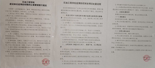 8月21日,學院結合上級部門關于疫情防控工作的最新要求及學校相關管理規(guī)定,摘錄并整理了《新冠肺炎疫情防控期間公寓管理暫行規(guī)定》《疫情防控突發(fā)情況處置流程》等內(nèi)容,張貼于宿舍及辦公室門口,提醒學生返校后疫情防控的重要性。