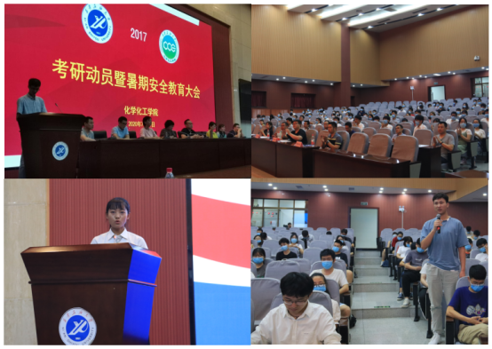 “全員”面對面交流。暑假伊始,化學(xué)化工學(xué)院2017級學(xué)生考研動員大會在鄠邑校區(qū)弘石報告廳召開。學(xué)院黨委副書記高黎,環(huán)境工程系主任楊博,應(yīng)用化學(xué)系副主任吳亞,學(xué)院各系副教授秦芳玲、鐘漢斌、黎小輝及青年博士骨干教師孫嫵娟、唐瑞源,學(xué)院全體學(xué)工干部及全體在校本科生200余人參會,會議由學(xué)院學(xué)管辦主任屈敏佳主持。學(xué)院7位專業(yè)課老師結(jié)合當(dāng)前形勢,專業(yè)前景,培養(yǎng)方向和自身求學(xué)經(jīng)歷分別作了專題輔導(dǎo),從學(xué)校專業(yè)選擇、復(fù)習(xí)計劃制定和專業(yè)課復(fù)習(xí)開展等方面作了專題報告,并就考研備戰(zhàn)中問題與同學(xué)們進(jìn)行交流解答探討。隨后,學(xué)院組織召開考研經(jīng)驗心得交流會,2020屆考研(博士、碩士)優(yōu)秀學(xué)生代表李茂剛、石陽、劉錦陽等作了專題考研心得分享,2017級學(xué)生代表郝攀、朱磊等作了交流發(fā)言。
