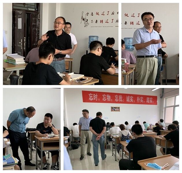 在每個考研自習室中,領(lǐng)導(dǎo)、老師們都與同學們進行親切交談,認真聆聽和詢問大家暑期在校期間的日常學習和生活情況。趙健處長對同學們提出幾點希望和要求,一是要明確考研目標,切勿盲目從眾,合理評估自身實際、理性選擇目標院校,只有冷靜剖析,量力而行,才能有的放矢;二是備戰(zhàn)考研期間要注意勞逸結(jié)合,學會自我調(diào)節(jié)壓力,適度放松;三是要不斷加強與身邊老師、同學們之間的交流溝通,與研友們互幫互助、攜手共進,營造濃厚的學習氛圍。田黨宏書記代表學院對全體考研學子的勤奮刻苦、拼搏進取的精神表示肯定和贊賞,田書記表示,學院每年為考研學生提供固定教室,為同學們安心學習提供一切便利條件,希望同學們在備戰(zhàn)考研的過程中能夠充分利用有效資源,積極調(diào)整好心態(tài),合理規(guī)劃剩余復(fù)習時間,踏踏實實、穩(wěn)扎穩(wěn)打、堅定信念、將備戰(zhàn)考研堅持到底。同時,由于本學期暑期時間較短,同學們要不斷鞏固前期線上學習的課程,協(xié)調(diào)好專業(yè)課學習和考研復(fù)習的關(guān)系,為新學期即將開始的各科課程考核打好堅實的基礎(chǔ)。隨后,劉笛副書記向同學們宣傳和解讀了學校對于暑期留校學生的管理規(guī)定以及后勤保障服務(wù),同時叮囑大家在疫情防控期間內(nèi)遵守學校各項規(guī)章制度,堅持日檢日報及晚間簽到工作,忌吃生、冷、不衛(wèi)生的食物,嚴防病從口入、注意身體健康,在校期間要充分利用寶貴的復(fù)習時間,科學制定學習計劃,戒驕戒躁、不畏困難,為實現(xiàn)夢想拼搏努力。