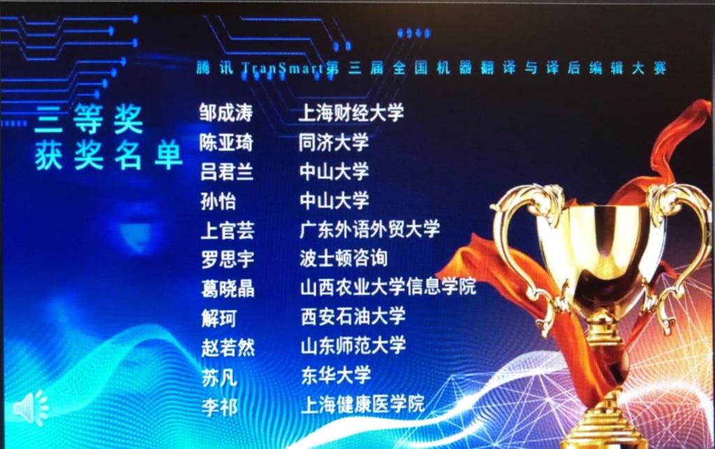 外國語學(xué)院在騰訊TanSmart第三屆全國機(jī)器翻譯與譯后編輯大賽中獲得佳績