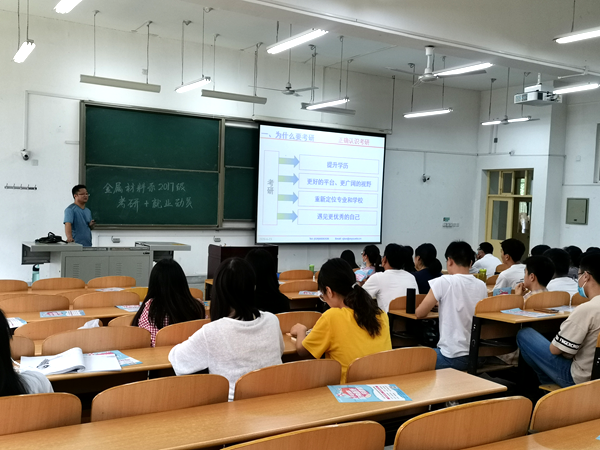 金屬材料工程專業(yè)2017級考研動員會由系主任雒設計主持,雒老師從“為什么要考研、如何應對考研、如何選擇考研的目標、如何準備復試與面試”等六個方面給大家做了詳細的講解,希望每位同學能針對自身的特點制定詳細的學習計劃和選擇報考院校,珍惜青春年華,努力奮斗,實現自己的理想。金屬材料工程專業(yè)2016級考研優(yōu)秀學生代表賀敬之、王亞杰、韓茜婷、張姍姍同學從備考復習、院校選擇、時間安排、心態(tài)調整、復試準備等方面分享了自己的心得體會。金屬材料系的教師結合自身的經歷及體會為2017級學生建言獻策,提出了寶貴的建議。