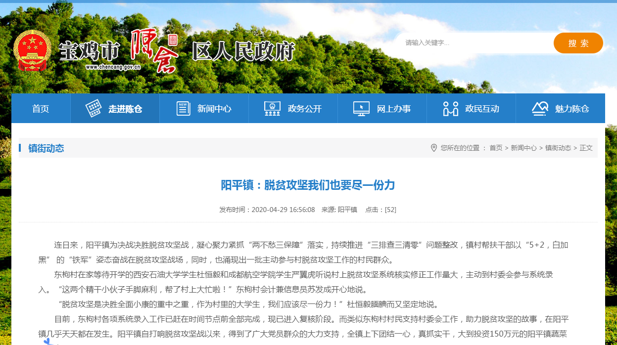 2020年是全國脫貧攻堅(jiān)決戰(zhàn)決勝之年,我們將全面建成小康社會,實(shí)現(xiàn)第一個(gè)百年奮斗目標(biāo)。在脫貧攻堅(jiān)全面收官的關(guān)鍵階段,石油工程學(xué)院2017級杜恒毅同學(xué),因積極志愿參與當(dāng)?shù)孛撠毠?jiān)工作,近日受到寶雞市陳倉區(qū)政府和《陽光報(bào)》報(bào)道宣傳,該區(qū)人民政府特致電我校,對該生進(jìn)行表揚(yáng)。