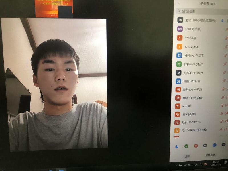 七名來自不同院系的心理委員首先發(fā)言。商務(wù)1801的黃蕾、化工1904的胡佩瑤、儲運(yùn)1902的佟澤、測控1802的東怡、會計(jì)1601的陳文娜、能化1901的雷帥兵、數(shù)學(xué)1801的鮑喬分別分享了自己應(yīng)對疫情以及發(fā)揮心理委員作用,與班級同學(xué)共同抗疫的經(jīng)驗(yàn),比如班干部提醒同學(xué)上網(wǎng)課打卡、成立學(xué)習(xí)小組督促學(xué)習(xí)、和父母相處時(shí)嘗試用筆書寫情緒、感到憤怒時(shí)先做呼吸放松練習(xí)、用恰當(dāng)?shù)姆绞脚c父母溝通,努力不去做“距離父母一米的陌生人”等等。同時(shí),他們也提出了自己以及同學(xué)們的新困擾,諸如目前居家上網(wǎng)課學(xué)習(xí)的焦慮情緒、不知何時(shí)返校的不確定感、和父母近距離相處時(shí)的沖突、在缺乏他律的環(huán)境下如何自律、事務(wù)繁多情況下的時(shí)間管理等問題,期待得到老師們的指點(diǎn)。