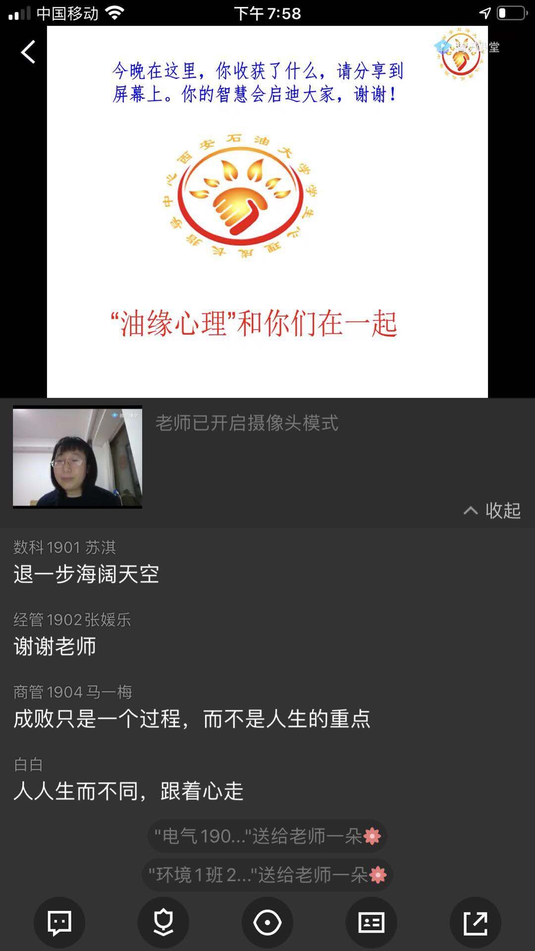 講座最后,同學(xué)們紛紛表示通過學(xué)習(xí),學(xué)會了正確看待生活中的挫折、成功和失敗,凡事多方面思考,不要在一次失敗中迷失自己,跳出防御型思維,養(yǎng)成成長型思維。