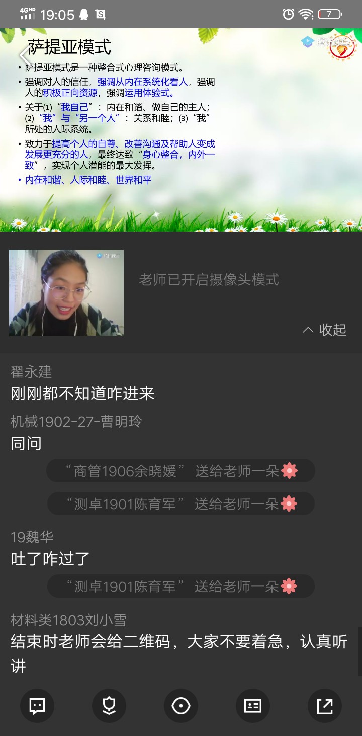 為進一步加強疫情期間師生的心理健康教育,4月23日晚,我校學(xué)生心理成長指導(dǎo)中心教師魏曉言老師在騰訊課堂進行了《看見我和你-薩提亞模式下的內(nèi)外和諧》專題講座,我校部分師生、全校心理委員近700人在線觀看學(xué)習(xí)。