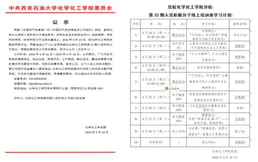 化學(xué)化工學(xué)院黨校在線啟動(dòng)第32期入黨積極分子培訓(xùn)