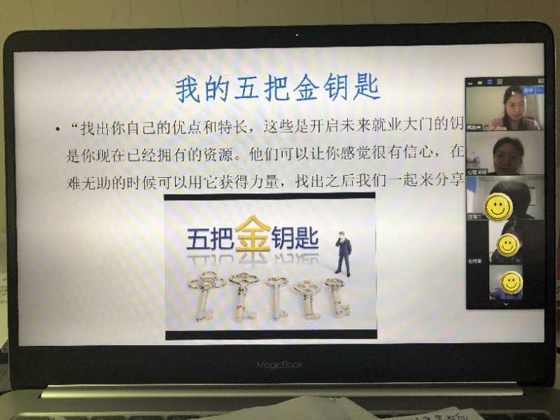 結(jié)合當(dāng)前疫情特殊情況,為做好此次線上團(tuán)體輔導(dǎo)方案,焦文潔老師公開招募畢業(yè)生,逐一了解報(bào)名學(xué)生的問題及困擾,最大程度貼近學(xué)生,走進(jìn)學(xué)生,結(jié)合學(xué)生的問題和困擾設(shè)計(jì)活動(dòng)方案、修訂活動(dòng)計(jì)劃,在特殊時(shí)期面向畢業(yè)生開展的第一次網(wǎng)絡(luò)團(tuán)體輔導(dǎo)。團(tuán)體輔導(dǎo)中,焦文潔老師以“自我介紹”和“十巧操”為開場(chǎng),通過“大家猜猜看”、“我的家族樹”、“會(huì)心漫談 解憂雜貨鋪”、“我的五把金鑰匙”和“自我調(diào)適”五個(gè)活動(dòng),以體驗(yàn)和互動(dòng)分享的形式,緩解畢業(yè)生自身的壓力和不良情緒,同時(shí)幫助畢業(yè)生進(jìn)一步了解自己的優(yōu)點(diǎn)和潛能,學(xué)習(xí)自我欣賞,自我肯定,更好地進(jìn)行生涯探索和規(guī)劃。同學(xué)們表示,通過本次團(tuán)體活,緩解了目前面臨的就業(yè)心理困擾及擔(dān)憂,今后將繼續(xù)合理安排自己的學(xué)習(xí)、生活,學(xué)會(huì)在疫情中規(guī)劃與積淀,面對(duì)與調(diào)整,為開學(xué)后找工作做好心理準(zhǔn)備。