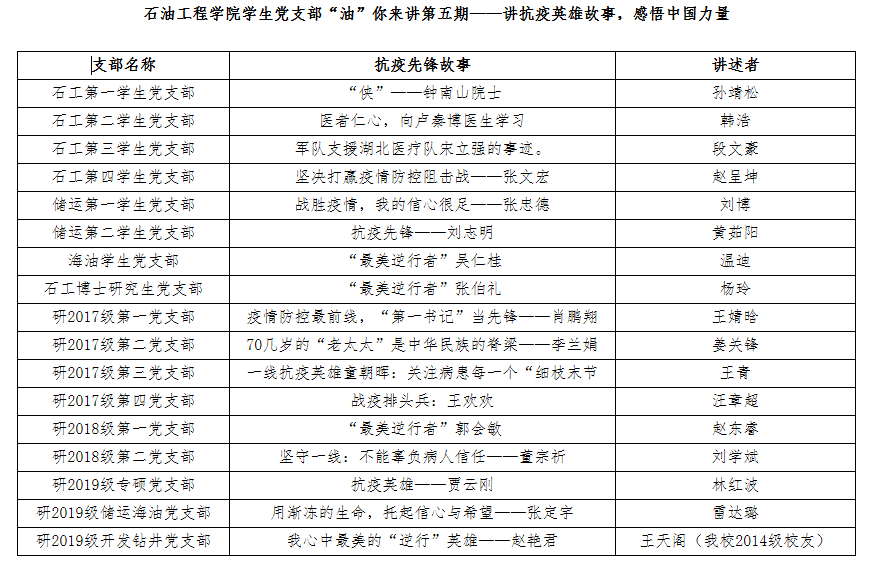 石油工程學(xué)院“油”你來講第五期——講抗疫英雄故事,感悟中國力量