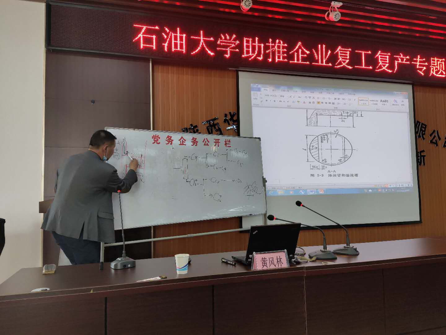 促生產(chǎn),進(jìn)行專題指導(dǎo)。為了進(jìn)一步了解掌握企業(yè)技術(shù)轉(zhuǎn)型過程中遇到困難,化學(xué)化工學(xué)院院長(zhǎng)王文珍、化工系主任曹彬與公司董事長(zhǎng)馬進(jìn)彪進(jìn)行了專項(xiàng)技術(shù)交流。為了更好解決目前企業(yè)在轉(zhuǎn)產(chǎn)生產(chǎn)過程出現(xiàn)的具體技術(shù)問題,由化學(xué)化工學(xué)院化工系黨支部書記黃風(fēng)林、院長(zhǎng)助理宋紹富,化工系主任曹彬、青年骨干劉菊榮、黎小輝組成的專家技術(shù)指導(dǎo)團(tuán),在廠區(qū)報(bào)告廳開展了專題培訓(xùn)會(huì),公司一線技術(shù)骨干及管理干部40余人參加學(xué)習(xí)。培訓(xùn)會(huì)上,公司董事長(zhǎng)馬進(jìn)彪作培訓(xùn)動(dòng)員講話和紀(jì)律要求,學(xué)校工會(huì)主席袁玎、化學(xué)化工學(xué)院黨委書記司馬文龍分別代表校院作專題講話,會(huì)議由公司副總經(jīng)理劉彥仁主持。