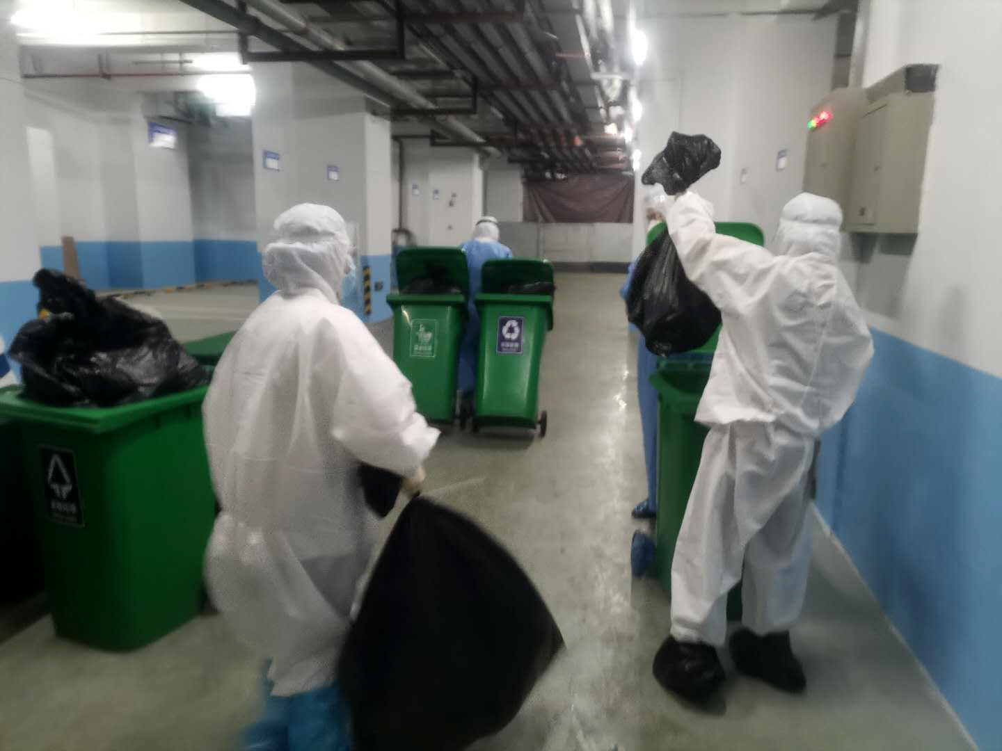 2020年4月1日晚,我們向往常一樣迅速穿好防護(hù)服進(jìn)入隔離區(qū)開始夜班的工作。接班后首先要通知當(dāng)天夜里需要解除隔離的人員,告知他們收拾好行李,等待解禁時(shí)間到來,把他們帶到安全通道,消殺完畢,辦理解禁手續(xù),看著他們平安的回家,大家心里也很欣慰。每天夜里11:00,我們需要把將近20個(gè)樓層的垃圾,全部裝袋運(yùn)送到樓下。夜班組多數(shù)是女孩子,看著樓下堆積如山的黑色袋子,望著姑娘們堅(jiān)強(qiáng)的身影,心中總會(huì)不禁感慨,只要我們齊心協(xié)力,一定會(huì)疫去花開,抗疫勝利。凌晨1:00以后,將會(huì)有很多境外回國的人員被指揮中心送來,對(duì)這些人員和他們的行李進(jìn)行消殺后,開始登記每一位隔離人員身份信息,記錄航班號(hào)、座位號(hào),并且詢問一些病史,有沒有發(fā)熱、氣促、咳嗽等等,測(cè)完體溫后將他們按照國籍分配到不同的樓層。遇到高峰期,每晚通??梢允杖霂资舜?。每次到后半夜的時(shí)候,已連續(xù)工作4-5個(gè)小時(shí),又渴又累又困,由于防護(hù)物資的緊缺,我們都能默默的忍耐著口渴,避免上廁所,以免造成防護(hù)物品的浪費(fèi)。沒有任務(wù)的時(shí)候大家抓緊時(shí)間休息,桌子、沙發(fā)、地板都是我們休息的地方。就這樣,一直到第二天早晨8:00交班迎接新的一天。