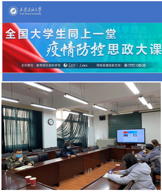 在舉國上下萬眾一心、眾志成城做好新冠肺炎疫情防控工作的特殊時期,教育部社會科學(xué)司聯(lián)合人民網(wǎng)舉辦了一堂全國大學(xué)生同上的疫情防控思政大課。我校研究生工作部積極響應(yīng)中央號召,為將高校思想政治理論課教學(xué)優(yōu)勢轉(zhuǎn)化為支持防疫斗爭的強(qiáng)大力量,迅速部署工作,確保每一位研究生都能居家上好這堂特殊的“大課”。9日下午,經(jīng)各年級研究生輔導(dǎo)員老師的提前布置,學(xué)生按要求通過多種途徑,全員參與、積極響應(yīng),順利觀看了課程直播。研究生工作部高榮芳部長、李甦副部長以及研工部思想教育科全體教師也在我校雁塔校區(qū)二號教學(xué)樓906會議室進(jìn)行了收看學(xué)習(xí)。