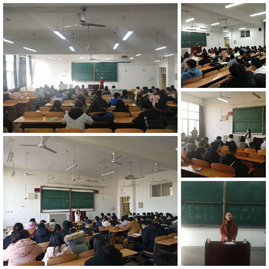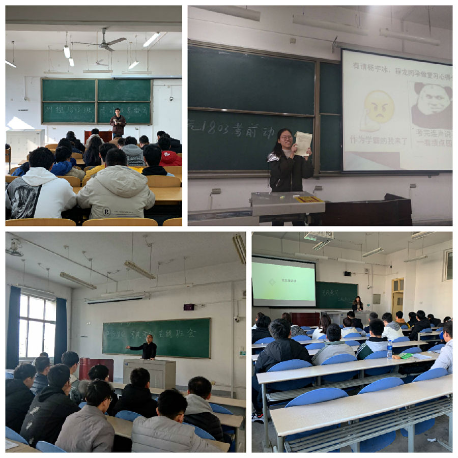 系列活動之推進(jìn)學(xué)風(fēng)考風(fēng)專業(yè)大會。學(xué)院2018級五個專業(yè)分別召開專業(yè)大會,會議由學(xué)院2018級輔導(dǎo)員錢宇航主持,她首先結(jié)合歷史故事及現(xiàn)實(shí)事例向?qū)W生們講述誠信做人的重要性以及失信的危害。隨后,錢老師對考試紀(jì)律規(guī)定,違紀(jì)處分管理規(guī)定等方面的內(nèi)容做了詳細(xì)介紹,并通報(bào)了近年來因作弊而受處分的學(xué)生情況,讓學(xué)生們深刻認(rèn)識到違反校規(guī)校紀(jì)對自身發(fā)展的影響。最后,錢老師分專業(yè)請安全委員代表向同學(xué)們介紹假期安全注意事項(xiàng),并叮囑學(xué)生們要詳細(xì)填寫寒假離返校登記表,高高興興回家去,平平安安返校來。