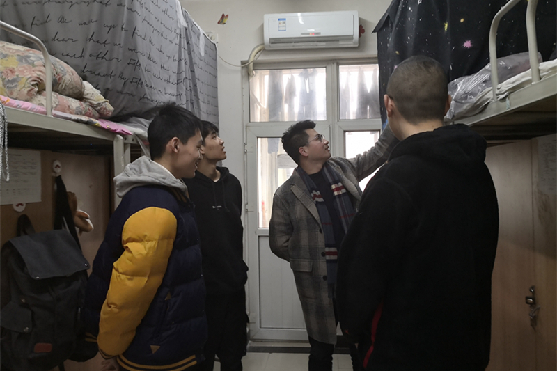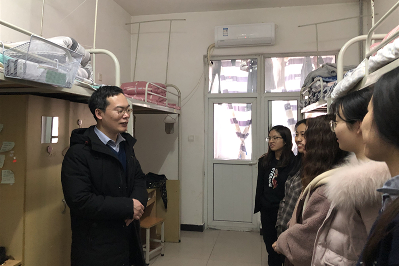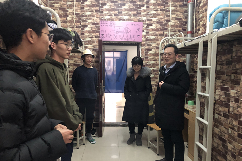 走訪過程中張建高副書記與學(xué)生們進行親切交談,送去節(jié)日問候,了解同學(xué)們的思想動態(tài)以及期末復(fù)習(xí)情況,同時對同學(xué)們進行考風(fēng)考紀教育并強調(diào)了考試紀律問題。各年級輔導(dǎo)員老師親切提醒學(xué)生做好期末復(fù)習(xí)備考,爭取獲得優(yōu)異成績。