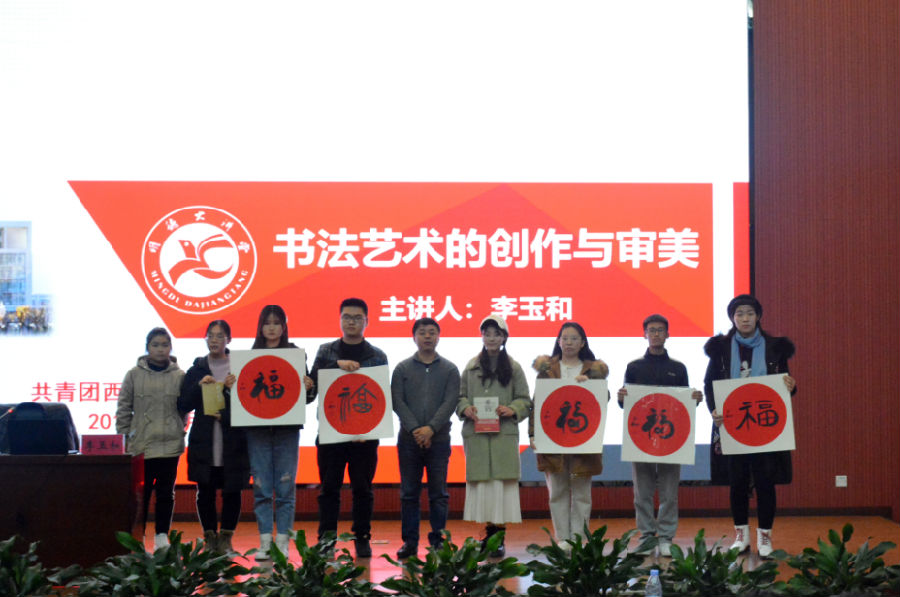 12月27日下午,由校團委主辦的第六十五期明德大講堂在鄠邑校區(qū)圖書館弘石報告廳成功舉辦。陜西省青年文學(xué)協(xié)會副主席李玉和老師應(yīng)邀作了題為《書法藝術(shù)的創(chuàng)作與審美》的講座,鄠邑校區(qū)300余名師生聽取了本次講座。