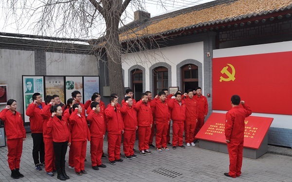 參觀結(jié)束后,全體黨員面對(duì)黨旗,齊聲重溫入黨誓詞。