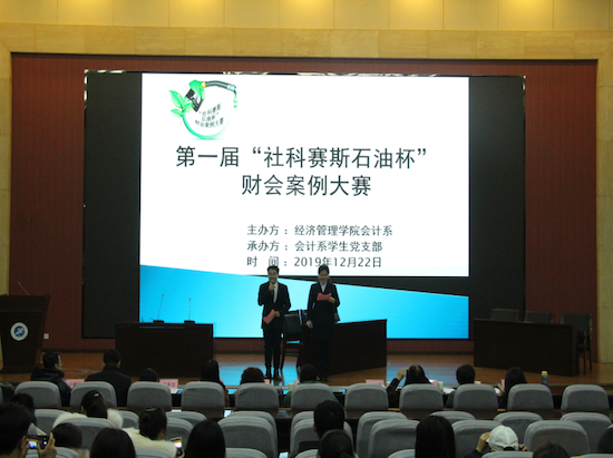 2019年12月22日,由實(shí)驗(yàn)管理處和經(jīng)濟(jì)管理學(xué)院發(fā)起,經(jīng)濟(jì)管理學(xué)院會(huì)計(jì)系主辦,會(huì)計(jì)系第一學(xué)生黨支部和第二學(xué)生黨支部承辦的我校首屆“社科賽斯石油杯”財(cái)會(huì)案例大賽在鄠邑校區(qū)弘石報(bào)告廳成功舉辦。作為經(jīng)濟(jì)管理學(xué)院“不忘初心、牢記使命”主題教育中“師生融合”的一項(xiàng)重要活動(dòng),經(jīng)濟(jì)管理學(xué)院院長(zhǎng)王君萍、副院長(zhǎng)吳勛、會(huì)計(jì)系黨員教工、無(wú)黨派人士、部分學(xué)工干部以及會(huì)計(jì)系200多名師生參加了本次活動(dòng)。