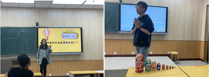 在“學術(shù)誠信活動月”系列活動之講課比賽中,還邀請到學院黨委書記余小勇、教學辦主任戚曉波擔任評委。經(jīng)初選進入決賽的六組同學精心準備,通過豐富多彩的教學內(nèi)容、精致美觀的教學課件、獨具特色的授課方式,為評委老師以及觀賽同學呈現(xiàn)出別具一格,生動形象的對外漢語教學課堂,獲得評委老師們的全方位評價與指導(dǎo),并評選出一等獎一組、二等獎兩組及三等獎三組。