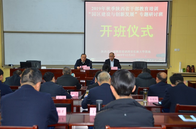12月2日,2019年秋季陜西省干部教育培訓(xùn)“園區(qū)建設(shè)與創(chuàng)新發(fā)展”專題研討班在我校培訓(xùn)中心明德樓110教室順利開班。干部教育培訓(xùn)西安石油大學(xué)基地辦公室主任、繼續(xù)教育學(xué)院院長談建勤和來自全省各園區(qū)主管園區(qū)建設(shè)工作的30余位參訓(xùn)領(lǐng)導(dǎo)參加了開班式。開班式由繼續(xù)教育學(xué)院副院長吳民生主持。