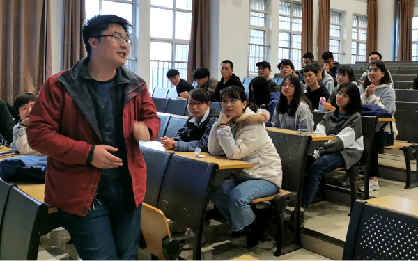 接著,系黨支部書記徐向前老師結(jié)合“不忘初心、牢記使命”主題教育,向同學(xué)們介紹了學(xué)校和我院主題教育的開展情況。他強(qiáng)調(diào)指出,教師的職責(zé)就是為學(xué)生傳道、授業(yè)、解惑,作為黨員教師,完全有責(zé)任有義務(wù)走在前列,充分發(fā)揮先鋒模范作用,既教書又育人。徐老師還就期中教學(xué)檢查中同學(xué)們的反饋意見,組織老師與同學(xué)們一起交流互動,答疑解惑,引導(dǎo)同學(xué)們正確認(rèn)識和積極面對學(xué)習(xí)生活中面臨的困難。