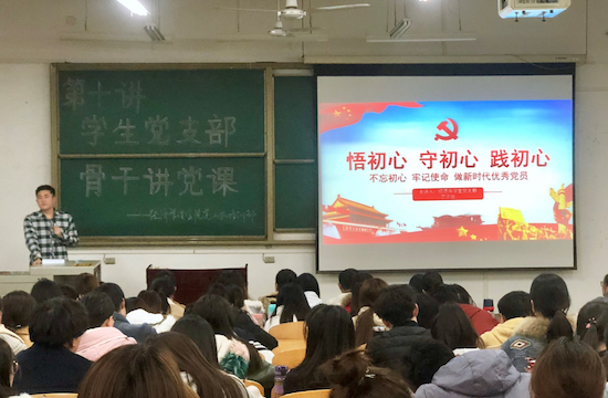 為推進“不忘初心、牢記使命”主題教育,豐富黨員教育管理,強化理論武裝,12月2日晚,經(jīng)濟管理學院“不忘初心、牢記使命”學生黨支部骨干講黨課活動在鄠邑校區(qū)教學B區(qū)225室開展,學生黨員代表、第44期入黨積極分子近200人參加。