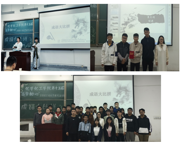 奮進(jìn)逐夢(mèng)西石大,堅(jiān)守初心化工人,為慶祝祖國(guó)成立七十周年,改革逐夢(mèng)取得舉世矚目的成果,深入學(xué)習(xí)貫徹習(xí)近平新時(shí)代中國(guó)特色社會(huì)主義思想和黨的十九大精神,傳承“愛(ài)國(guó)、進(jìn)步、民主、科學(xué)”的五四愛(ài)國(guó)主義精神,激勵(lì)引領(lǐng)廣大青年學(xué)子大力弘揚(yáng)以愛(ài)國(guó)主義為核心的偉大民族精神,激勵(lì)西石大化學(xué)化工學(xué)院學(xué)子奮力逐夢(mèng),堅(jiān)守初心,同時(shí),祝愿化學(xué)化工學(xué)院勇攀高峰,再創(chuàng)輝煌,化學(xué)化工學(xué)院舉辦以“逐夢(mèng)·初心”為主題的宿舍文化節(jié),先后舉辦了“金秋杯”辯論賽、“英語(yǔ)風(fēng)采大賽”、“成語(yǔ)大比拼”、“”我在未來(lái)等你”等系列活動(dòng)。