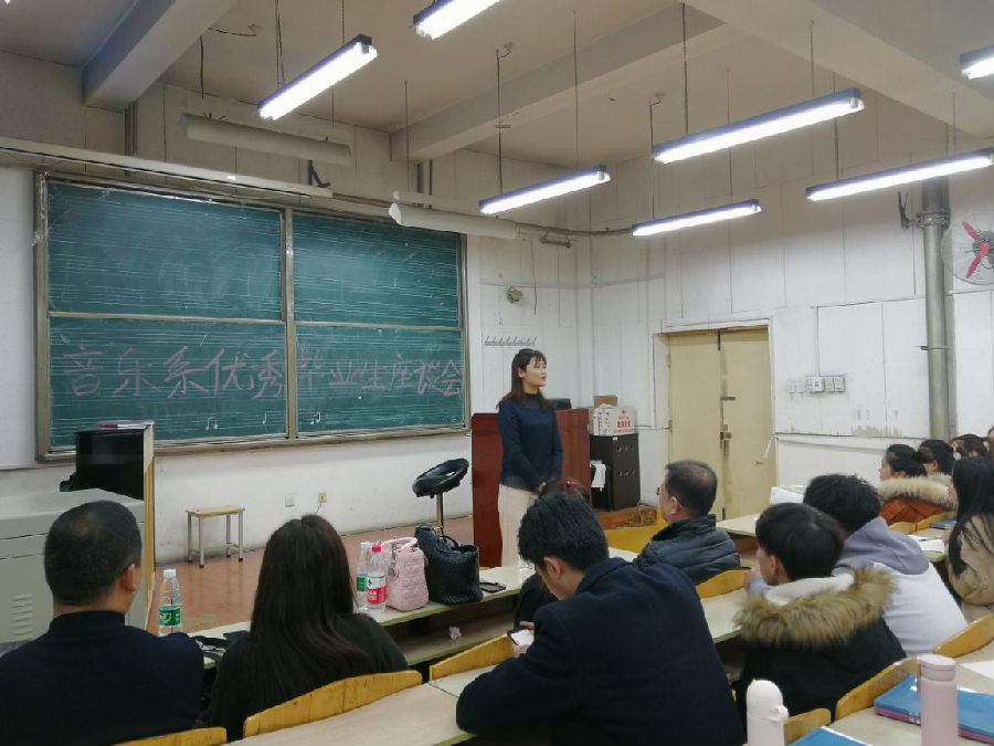 本次座談會邀請到音樂系2001級吳茁世、2002級韓嘉和梁曉鳳、03級瞿文婷四名優(yōu)秀畢業(yè)生,他們在座談中依次發(fā)言,向我系在校生暢談母校對自己成長的培養(yǎng)和教育,講述了自己的本科期間的學習和生活的點點滴滴,告誡在學校期間要努力學習專業(yè)知識,合理安排學習時間,有著明確的學習目標。在畢業(yè)之后的就業(yè)、成長歷程中要根據需要和自身不足不斷充電進步。他們向在校生交流學習經驗,求職經驗,鼓勵大家努力上進,為大家明確學習方向,同時也為我系在校上了別開生面的一堂課。