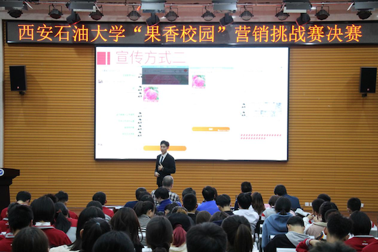 2019年11月18日晚,由校團(tuán)委和經(jīng)濟(jì)管理學(xué)院主辦,經(jīng)濟(jì)管理學(xué)院企業(yè)管理教工黨支部、企業(yè)管理學(xué)生黨支部和營(yíng)銷協(xié)會(huì)承辦的首屆“果香校園”營(yíng)銷挑戰(zhàn)賽決賽在鄠邑校區(qū)經(jīng)管人文樓118成功舉辦。經(jīng)濟(jì)管理學(xué)院院長(zhǎng)王君萍、企業(yè)管理系全體教師、學(xué)院部分學(xué)工干部、企業(yè)管理學(xué)生黨支部全體成員、營(yíng)銷協(xié)會(huì)會(huì)員和參賽選手共300余名師生參加了本次活動(dòng)。