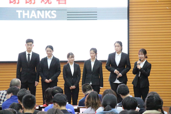 決賽接近尾聲,經(jīng)濟(jì)管理學(xué)院“果香校園”營(yíng)銷挑戰(zhàn)賽發(fā)起人沈麗萍對(duì)此次營(yíng)銷挑戰(zhàn)賽活動(dòng)進(jìn)行了匯報(bào)總結(jié)并和她的策劃團(tuán)隊(duì)共同上臺(tái)致謝。至此,經(jīng)濟(jì)管理學(xué)院“果香校園”營(yíng)銷挑戰(zhàn)賽圓滿結(jié)束。