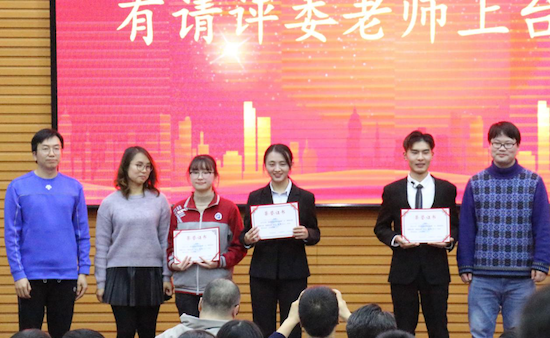 人文院設(shè)計(jì)系劉東林同學(xué)進(jìn)行優(yōu)秀團(tuán)隊(duì)代表講話,對(duì)挑戰(zhàn)賽經(jīng)歷做出了總結(jié),并對(duì)到場(chǎng)評(píng)委老師及嘉賓表示感謝,后評(píng)委老師為其依次頒獎(jiǎng)。