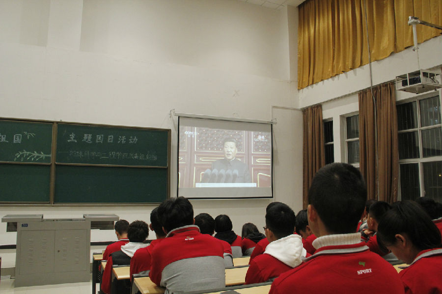 2019年11月12日晚,地球科學(xué)與工程學(xué)院團委在鄠邑校區(qū)開展 “我和我的祖國”主題團日活動,學(xué)院200余名團員參加。