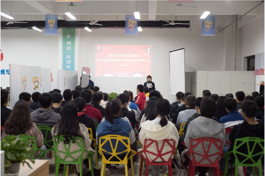 2019年11月12日晚7點(diǎn),石油工程學(xué)院于石工地科樓校易班發(fā)展中心召開石工院易班工作站換屆暨網(wǎng)絡(luò)思政教育大會。學(xué)生工作部(處)、校易班發(fā)展中心指導(dǎo)老師張浩然,石油工程學(xué)院學(xué)生管理辦公室主任朱戰(zhàn)威,易班工作站指導(dǎo)老師孫浩哲和全體易班學(xué)生干部共計50余人出席,大會由石工院易班工作站站長石工1703班杜曉主持。