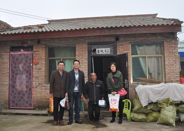 在幫扶對象肖和平家,大家詳細了解了肖和平病情恢復(fù)狀況和孩子的學(xué)習(xí)情況,細致詢問了今年的家庭經(jīng)濟收入狀況及幫扶計劃落實情況。在83歲的五保戶薛忠孝老人家里,學(xué)院為老人帶去的食用油、大米等慰問品。大家仔細查看了房間布設(shè)和生活設(shè)施,詢問老人還有什么困難,希望老人保持樂觀、保重身體。樂觀的薛忠孝老人表示國家扶貧政策好,學(xué)校幫扶到位,現(xiàn)在生活很幸福。