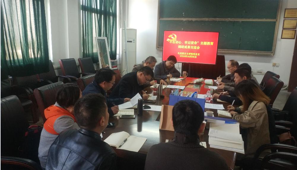 10月30日上午在雁塔校區(qū)第一教學樓818會議室,馬克思主義學院舉行了“不忘初心、牢記使命”主題教育調(diào)研成果交流會暨主題教育開展情況匯報會。學校主題教育督導組耿嶺、喬曉到會指導,學院黨政領(lǐng)導班子、中心組成員、黨支部書記、教研室主任參加會議,會議由黨總支書記李淵主持。