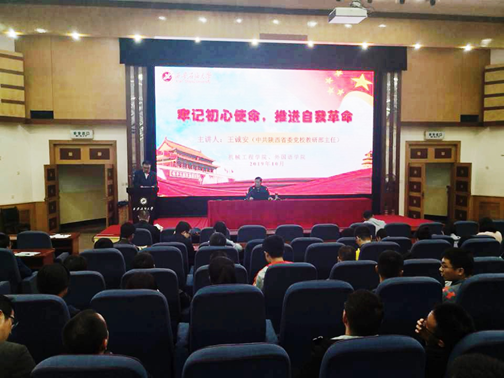 為扎實(shí)開展好“不忘初心、牢記使命”主題教育工作,有效推進(jìn)主題教育工作有序開展,2019年10月17日下午,機(jī)械工程學(xué)院和外國語學(xué)院聯(lián)合在雁塔校區(qū)學(xué)術(shù)報(bào)告廳舉辦“牢記初心使命、推進(jìn)自我革命”專題學(xué)習(xí)報(bào)告會(huì),特邀知名黨建專家、中共陜西省委黨??粕绮吭魅危袊影哺刹繉W(xué)院王誠安教授主講,兩個(gè)學(xué)院的教師、研究生200余人參加了學(xué)習(xí)報(bào)告會(huì),機(jī)械工程學(xué)院黨委田黨宏書記主持報(bào)告會(huì)。