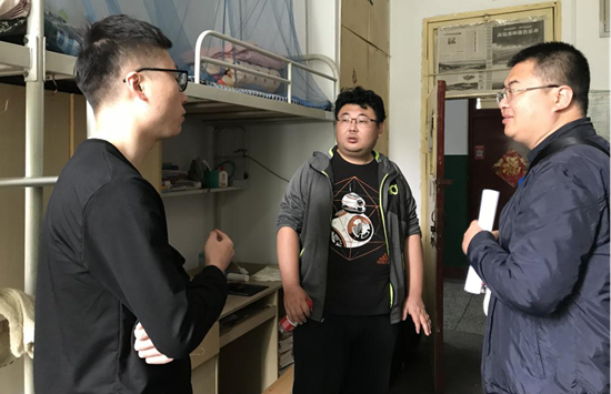 9月18日上午經(jīng)濟(jì)管理學(xué)院黨委副書記趙海濤一行走訪雁塔校區(qū)二號學(xué)生宿舍,看望經(jīng)濟(jì)管理學(xué)院2017、2018級研究生,學(xué)生管理辦公室主任劉冰、輔導(dǎo)員老師康霏陪同走訪。