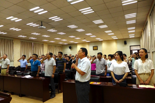 大會(huì)首先舉行了隆重的教師宣誓活動(dòng)。在校級(jí)教學(xué)名師周好斌教授的領(lǐng)誓下,全院教師面向國(guó)旗進(jìn)行了莊嚴(yán)宣誓。言簡(jiǎn)意賅、鏗鏘有力的錚錚誓詞道出了教師職業(yè)的基本操守和標(biāo)準(zhǔn),大家滿(mǎn)懷深情的莊嚴(yán)宣誓表達(dá)了自己對(duì)教育事業(yè)的熱愛(ài)、忠誠(chéng)和承諾。