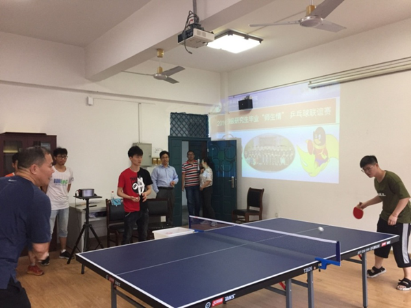 6月20日下午,我院在312室舉辦了2016級研究生“師生情”乒乓球聯(lián)誼賽,學(xué)院黨委書記齊仲鋒、副書記馬文慶、副院長宋海洋以及全體在校老師與2016級研究生展開激烈精彩的乒乓球比賽,現(xiàn)場氣氛活躍、競爭激烈,歡聲笑語連成一片。切磋技藝、增進(jìn)情誼,師生在拼搏中享受著比賽的無窮樂趣,比賽一直持續(xù)到下午6:00,為大家?guī)砹艘粓鰟e開生面的視覺盛宴,給師生們留下了美好的回憶。本次聯(lián)誼賽的舉辦進(jìn)一步增強(qiáng)了畢業(yè)生的母校情和師生情。
