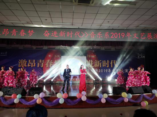 為紀念五四運動100周年,慶祝新中國70華誕,我校音樂系于6月5日在鄠邑校區(qū)舉辦了2019年文藝展演。校黨政領(lǐng)導(dǎo)李天太、張木、蘇文甫以及部分職能處室負責(zé)人,鄠邑校區(qū)本科生共計400余人觀看晚會。