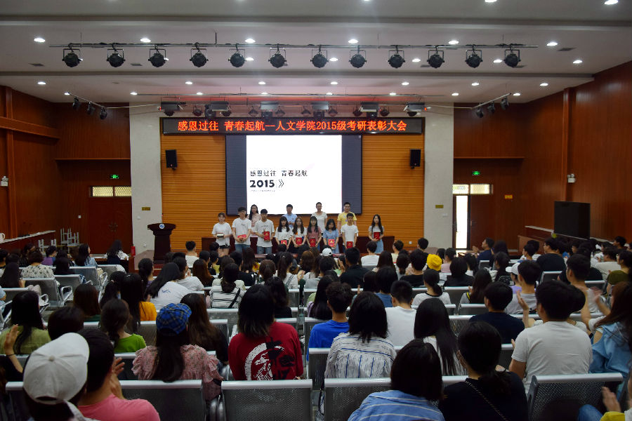 為了鼓勵先進、鼓舞斗志,人文學院于6月6日中午在人文經(jīng)管樓118室舉辦“感恩過往?青春起航”2015級考研表彰大會。此次會議由2015級學生輔導員付強主持,人文學院黨委副書記盛丹、學生管理辦公室主任高亮、各年級輔導員以及有志于考研的學生近三百人參加。
