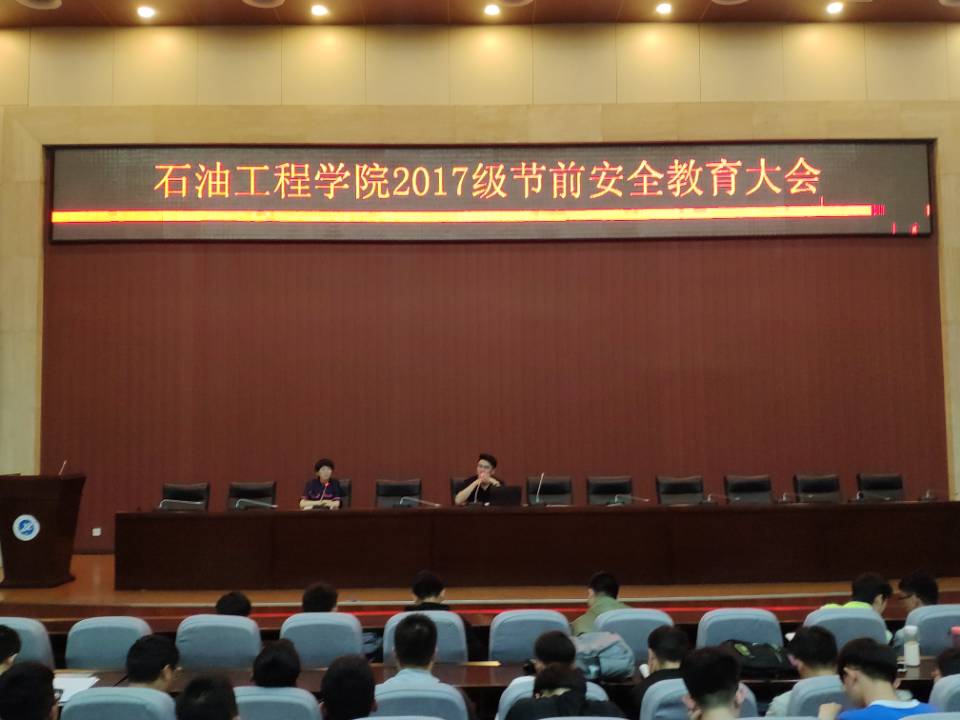 為進一步增強學生自我保護與安全防范意識,嚴格落實我校學生工作部(處)關于學生假期安全教育的相關規(guī)定。5月26日中午1時,石油工程學院在我校鄠邑校區(qū)弘石報告廳召開2017級夏季安全及端午節(jié)前安全教育大會,本次大會由2017級輔導員孫浩哲主持,2017級輔導員張楠和全體2017同學共計370余名同學參加。
